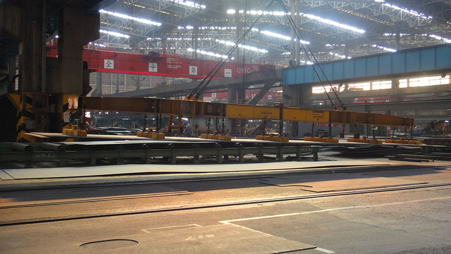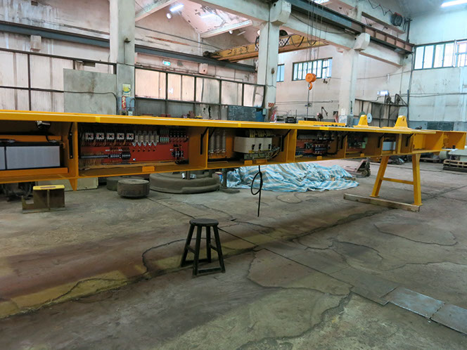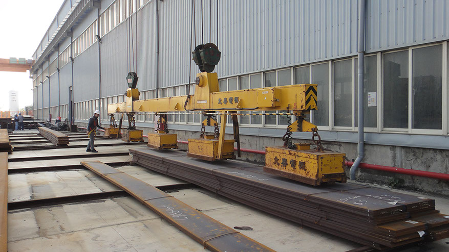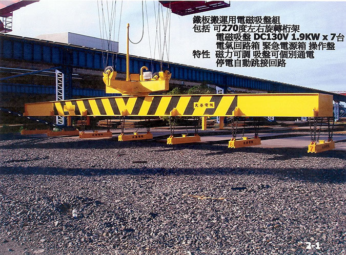 造船業客戶訂製鋼板搬運電磁吸盤設備,桁架內建吸盤電氣控制系統