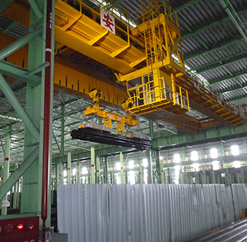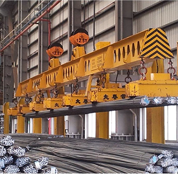 Telescopic beam and lifting magnets for billet handling